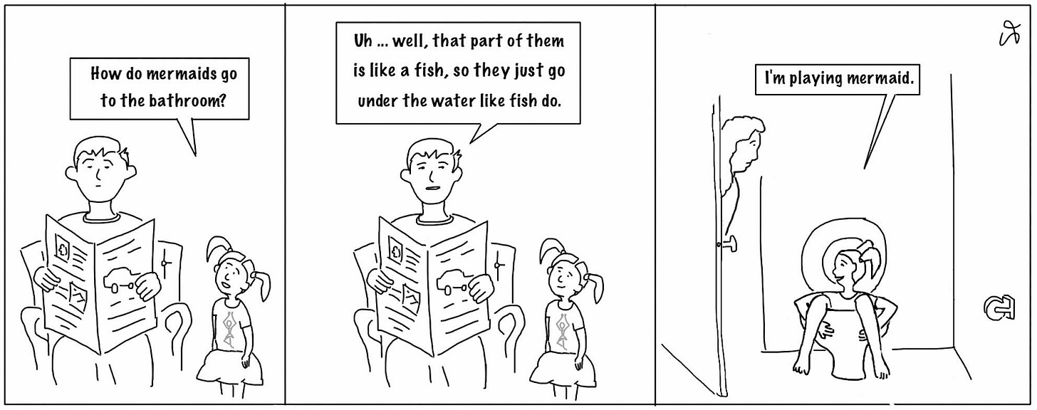 The comic art form often leverages character development for ongoing stories. As a rookie father at the time, I was regularly observing my children’s comical interpretations of the world around them. My attempts in this space often felt like I was merely making sentimental memorials, which was definitely true. The stories themselves were often simply about the relatable trials for most new parents. However, once in a while an inspiration would elevate into the unexpected, which all good humor requires.